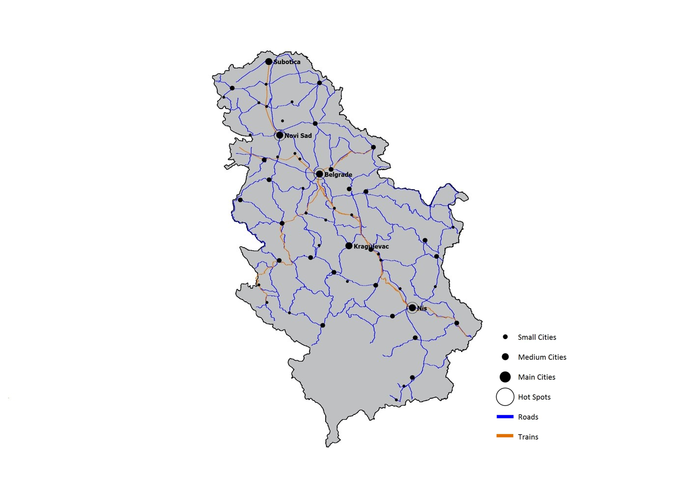 Мапа рута коришћених за мерења приказана је на Слици 1.